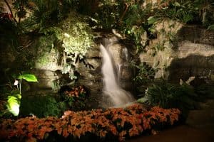 Our discussion just preceding this applies majorly to ponds. The depth at which one installs the fixture and the type of aquatic life therein dictates the lighting effect. In case of waterfalls and fountains, where there is a moving water body in question, one may light those from above, below or the sides, or even have an arrangement that creates a combination of these options. Different colors of lights will only enhance the feature. Change in direction and color will highlight the water movement and bring out the best. In each of these cases, hiding the fixtures effectively remains a necessity for aesthetic reasons.